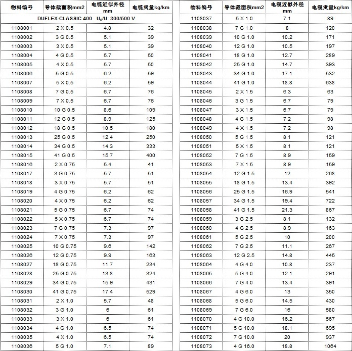 電纜規(guī)格