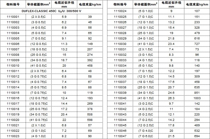 電纜規(guī)格
