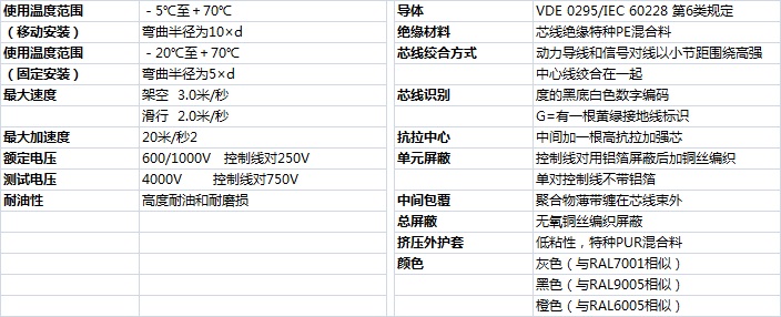 技術(shù)參數(shù)JUU拖鏈電纜-卷筒電纜-高柔性坦克鏈電纜廠家