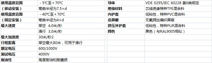 技術(shù)參數(shù)5Aj拖鏈電纜-卷筒電纜-高柔性坦克鏈電纜廠家